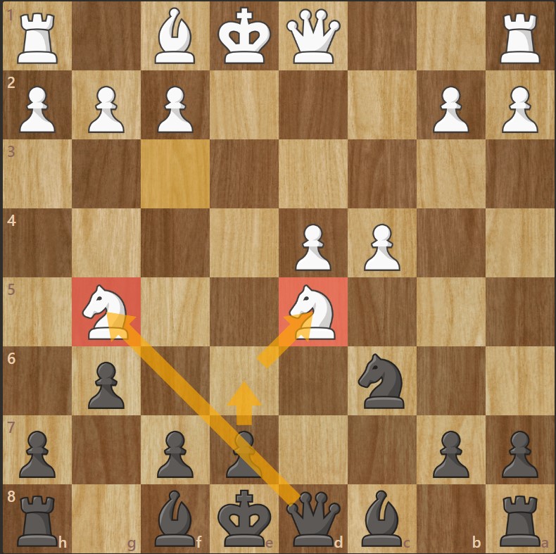 - Les Noirs répondent par …Dc7, défendant le cavalier et ajoutant de la pression sur e5.