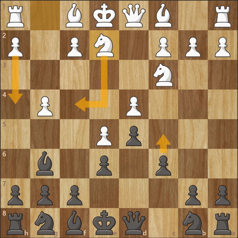 L’idée est d’éviter d’aller chercher le fou g6 en semant le chaos dans la structure de pions des Noirs à l’aile roi.