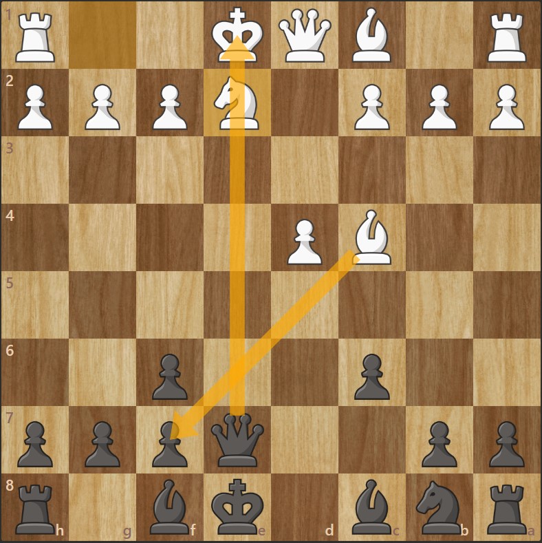 - Les Noirs répliquent immédiatement par …De7+, un coup précis qui oblige les Blancs à défendre leur roi.
