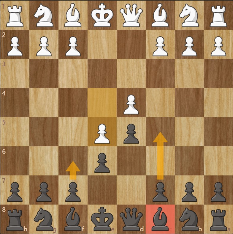 - Les Blancs activent leur fou de cases blanches. Double pression : sur c7.
