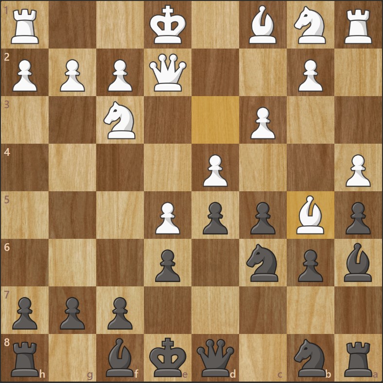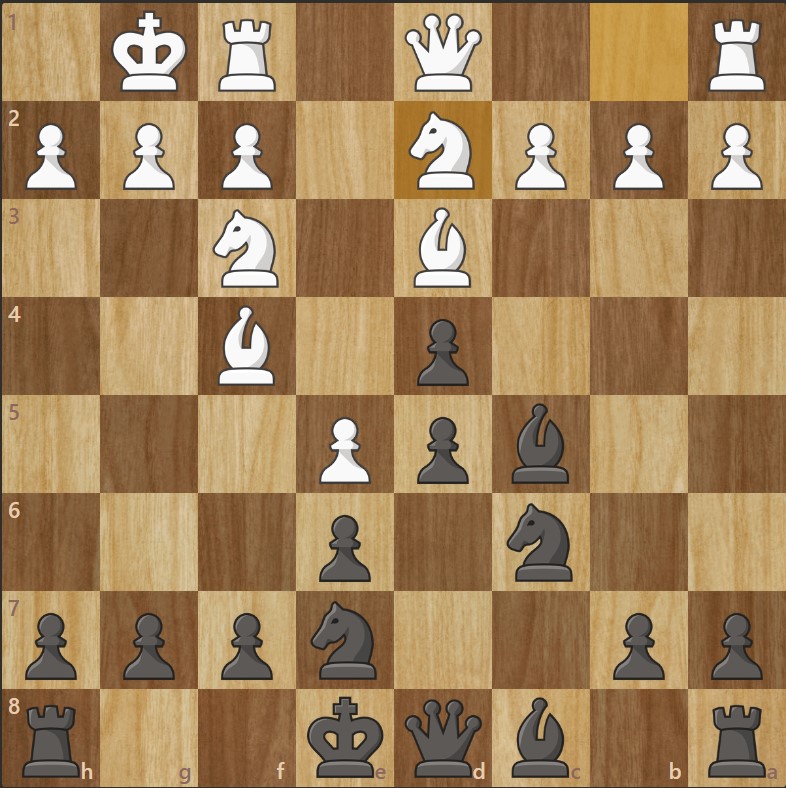 - Les Noirs roquent, sécurisant leur roi et préparant la poussée …f6 ou …f5.
