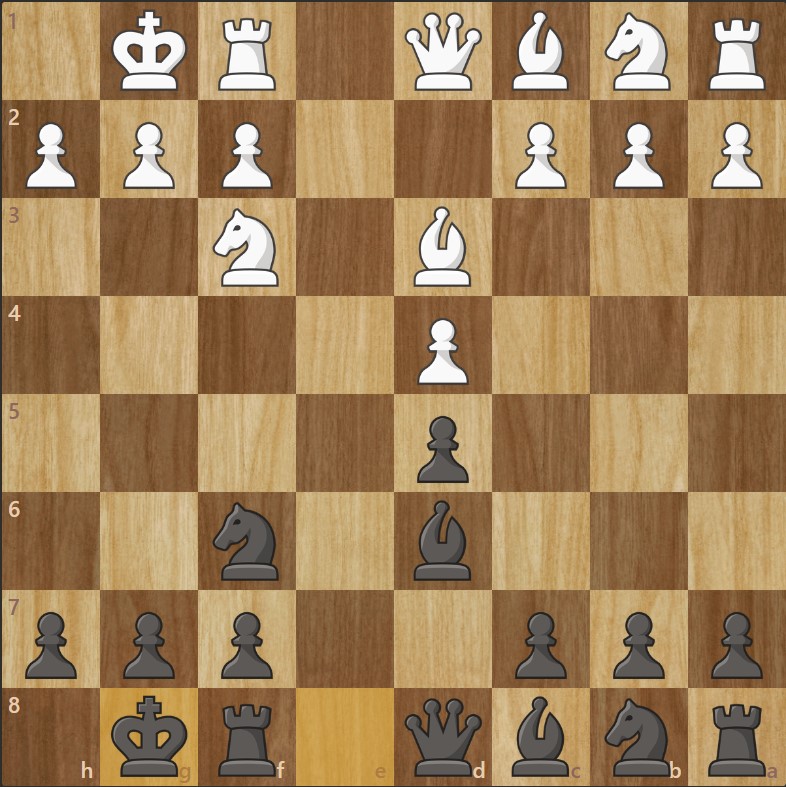 8. Fg3 Fe7
