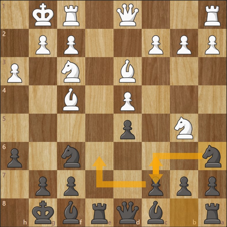 - Les Noirs développent leur cavalier vers une case inhabituelle mais logique.