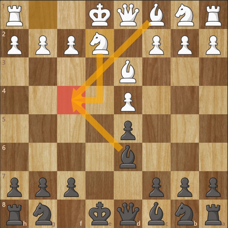 Dans ce développement, les Blancs sortent leur fou de cases blanches en 1er, puis le cavalier en e2.