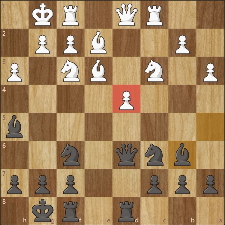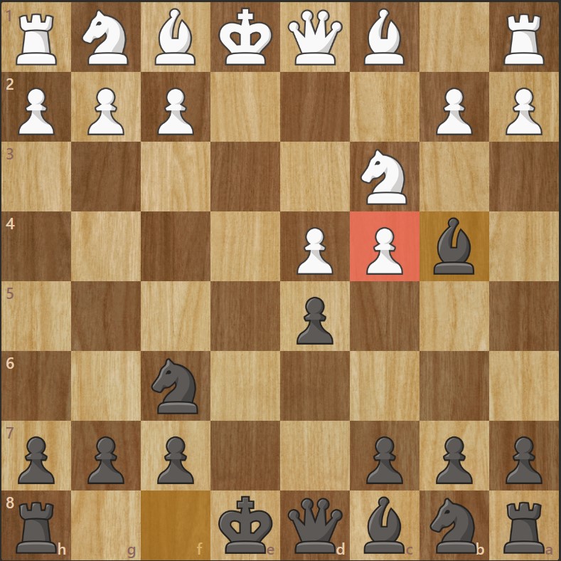 - Les Noirs sortent leur fou de cases noires sur b4, clouant le cavalier et augmentant la pression sur e4.