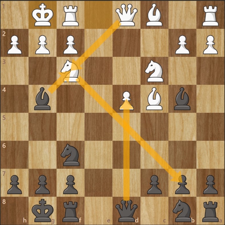 La dame blanche pourra à son tour prendre en b7, attaquant la tour a1 et détruisant complètement la structure de pions noirs à l’aile dame.