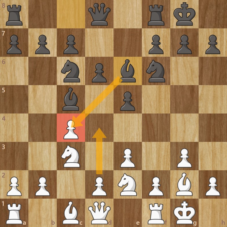 Un coup qui prend de l’espace, force l’échange, et ouvre les diagonales. La position qui en résulte sera faiblement à l’avantage des Blancs, rien n’est catastrophique pour les Noirs.
