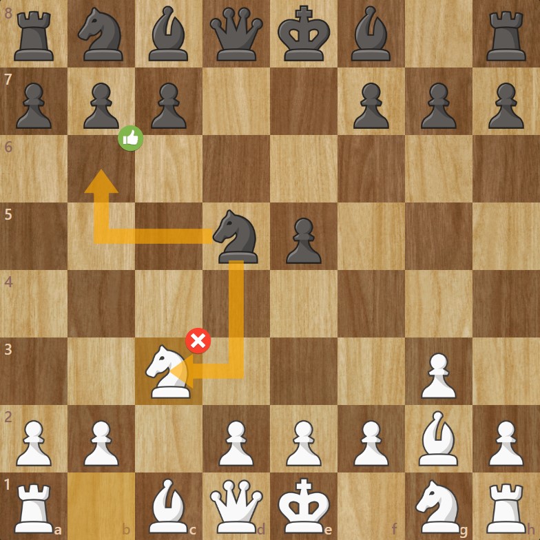 - Hypothèse n°2 : Le cavalier fuit en b5.