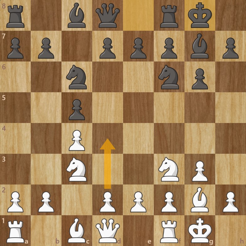 - Les Noirs décident de prendre l’initiative avant qu’il ne soit trop tard. Ils poussent le pion d5 tant que la case n’est pas « surchargée » par les Blancs.