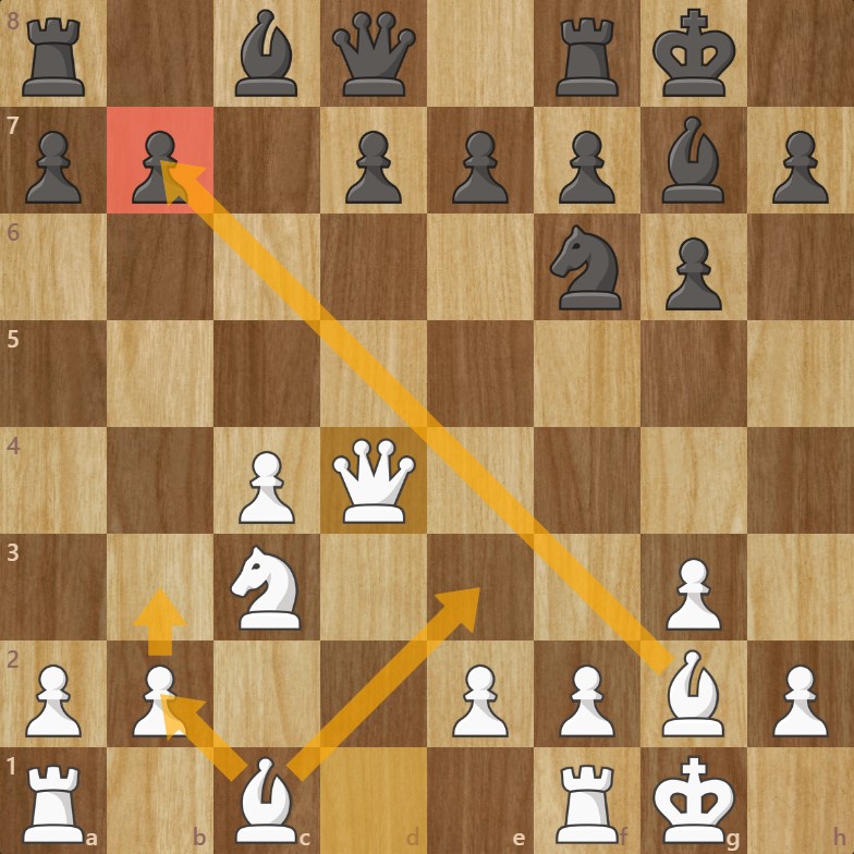 - La dame blanche se développe, créant une double attaque sur le cavalier et le fou.