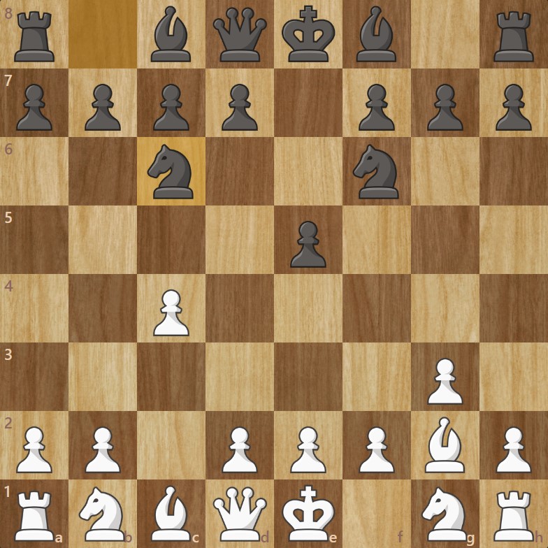 - Les Blancs jouent le coup caractéristique de l’ouverture anglaise. Ils visent un développement un peu plus lent et plus sûr, et un avantage positionnel à long terme.