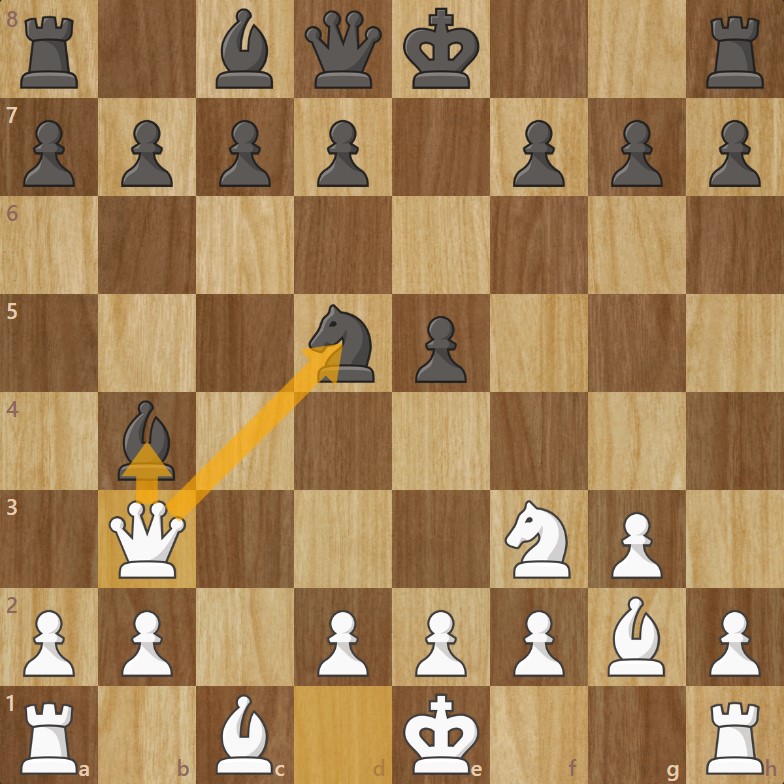 - Avant de pousser leur pion d et de potentiellement bloquer la sortie de leur fou de cases noires, les Noirs décident de sortir ce fou.