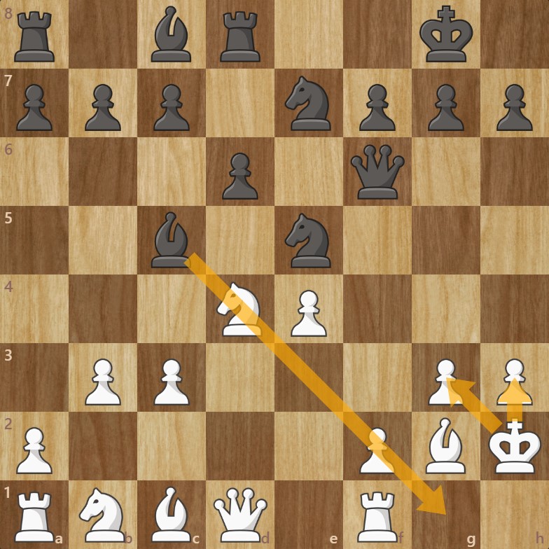 - Ce coup échange potentiellement les fous en e3, mais fait également peser une menace de mat en 1 sur les Blancs.