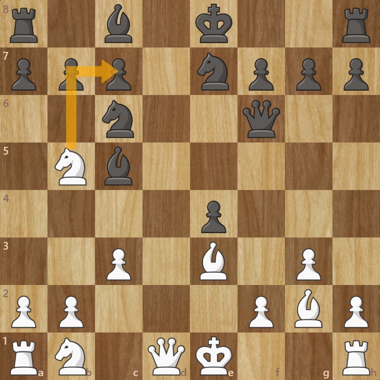 L’idée des Noirs est ensuite d’essayer d’enfermer le cavalier blanc en c7, afin de récupérer le matériel perdu.