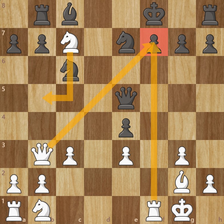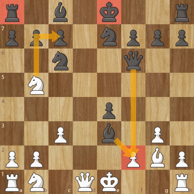 - Les Blancs gagnent un cavalier et menacent la dame noire.