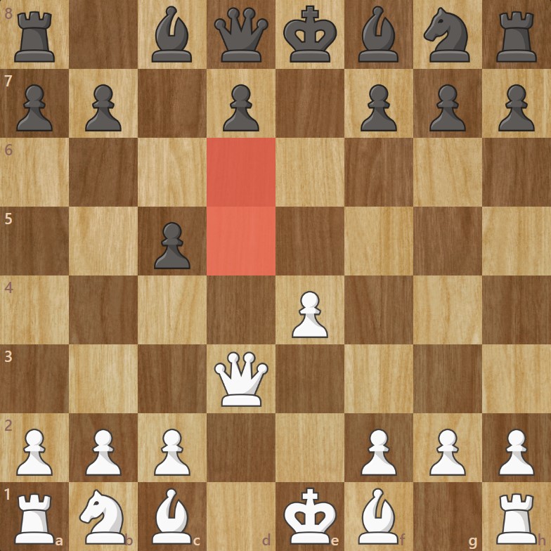 Le problème ici pour les Noirs est qu’ils n’ont aucune pièce développée. De plus, la dame blanche est centralisée et touche donc énormement de cases.