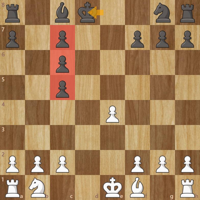On se rend bien compte dans cette position que les Noirs ne pourront pas pousser un pion en d5 car la case est contrôlée deux fois par les Blancs.