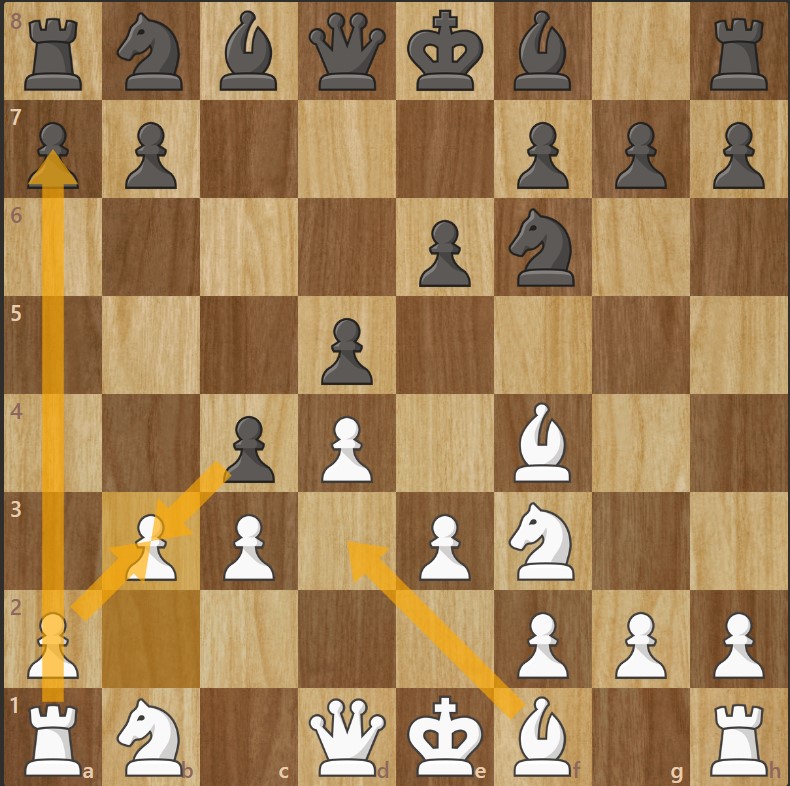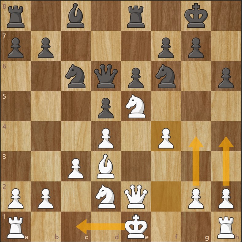 Puis, le projet sera d’envoyer tous les pions de l’aile roi contre le roque adverse et de jouer avec un grand roque.