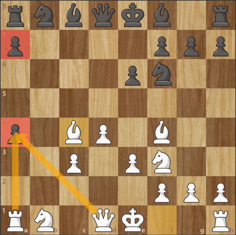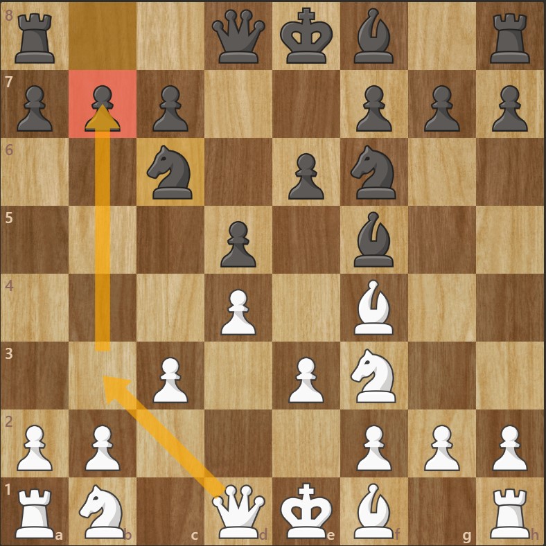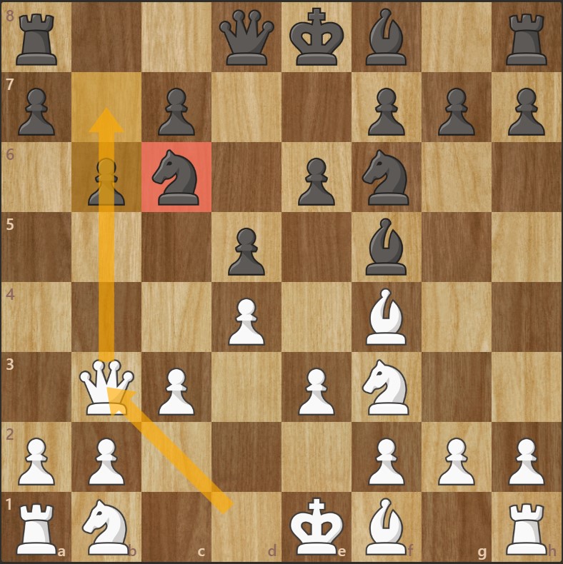 - Les Blancs sortent leur dame et menacent le pion b7.