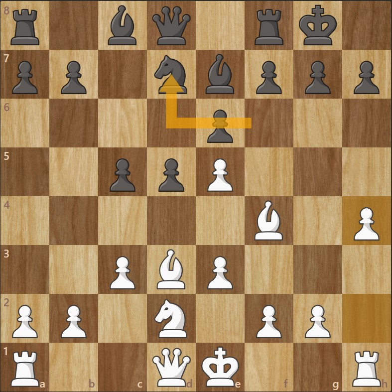 Sur ce développement assez habituel, les Noirs peuvent être tentés d’attaquer le fou en f4 pour l’échanger contre un cavalier.