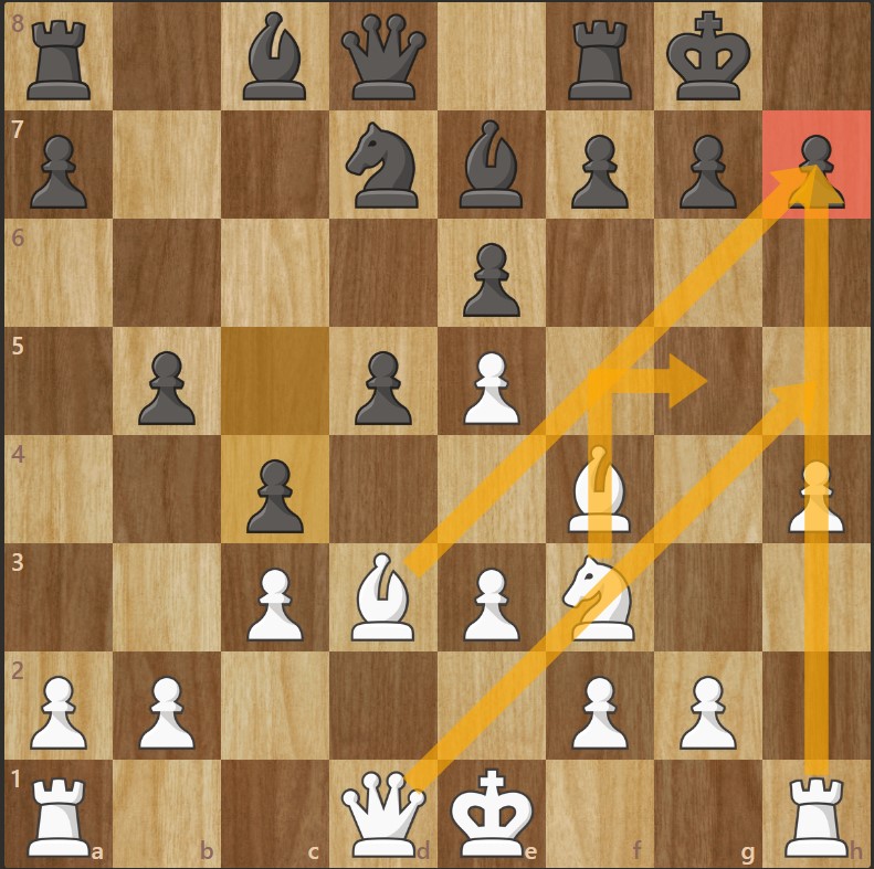 Dans cette situation, comme dans bon nombre d’autres (vues ci-dessus), la colonne ouverte h représente une menace importante pour les Noirs.